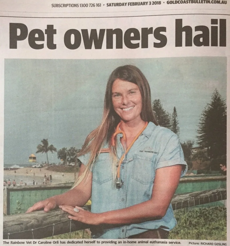 This photo of me was taken for an article in the Gold Coast Bulletin in Feb 2018 ~ you can read this article here. At the time I was one of the first mobile veterinary services in Australia dedicated solely to this area of veterinary care. Since then, I have done several radio interviews and appeared in the Animal Welfare League magazine (read here). I have chosen this specialist field as I am committed to a peaceful & respectful end-of-life for all animals.